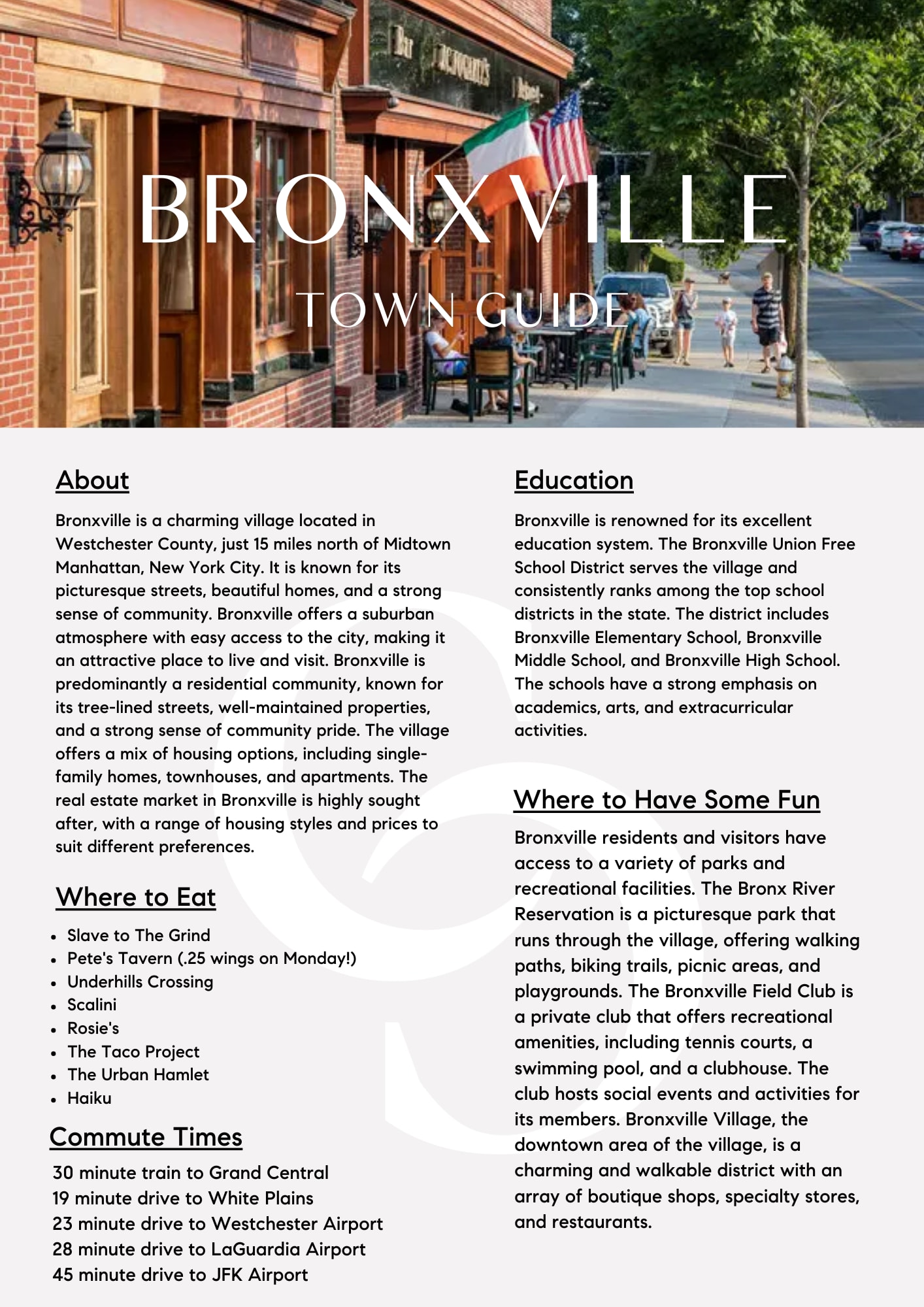 For a pdf version of our Bronxville Town Guide, click