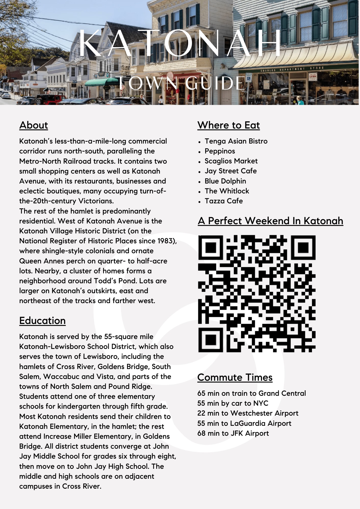 A pastoral, idyllic respite from the bustle of everyday worries, Katonah and Lewisboro cultivate a serene lifestyle born out of the arcadian natural settings that surround them. Families flock to the area for its friendly atmosphere, though individuals looking to commute to more urban areas can also find absolute contentment here.