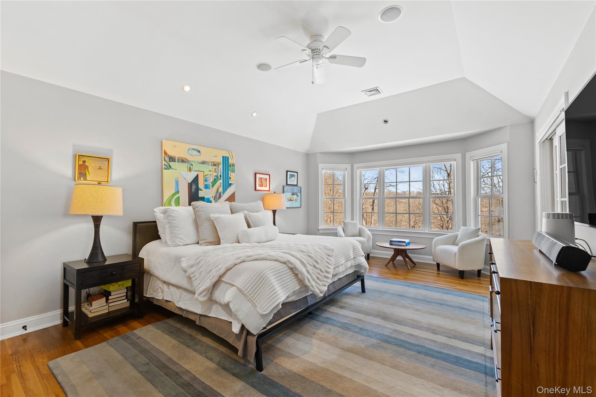 Outdoor spaces have been equally prioritized, with the installation of a bluestone patio, resurfacing of the hard court tennis court, new garage doors in 2025, professional landscape lighting, and a Bose sound system extending throughout the home.