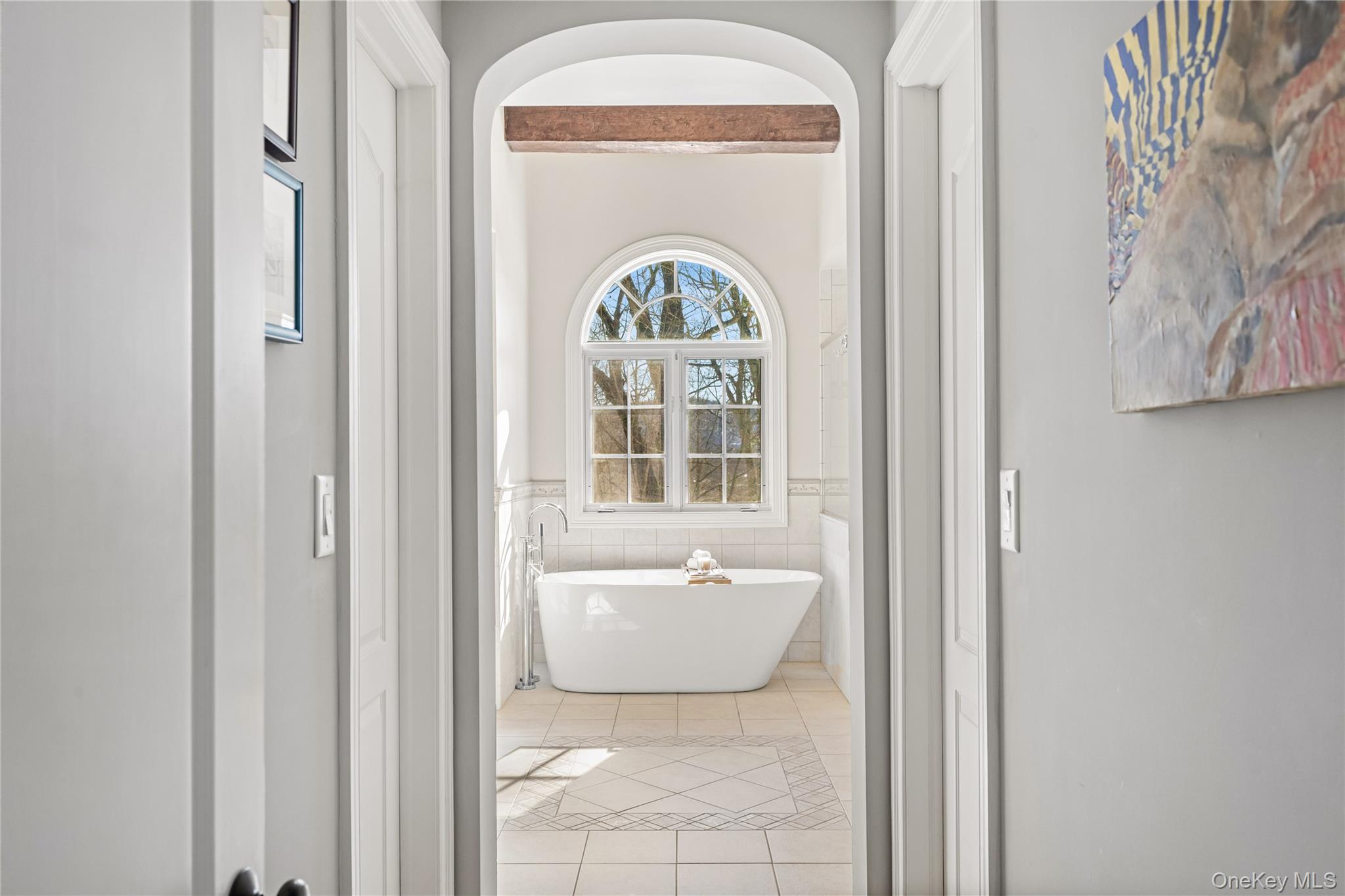 The second level features a serene primary suite with dual walk-in closets, a spa-like ensuite bath with soaking tub, and a private enclosed sunroom with sweeping treetop views. Three additional bedrooms, two full bathrooms, and a dedicated laundry room complete the upper level.