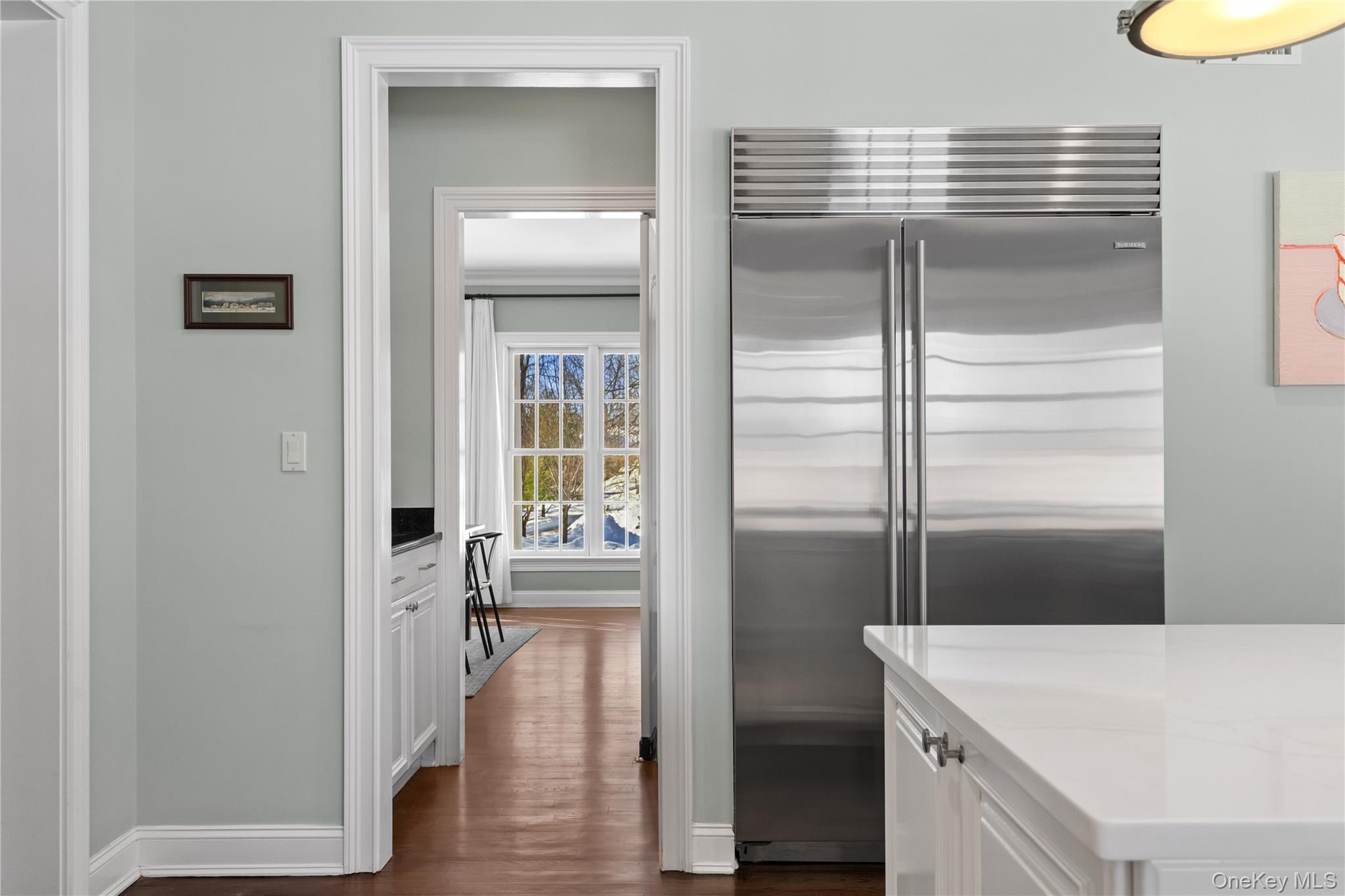 Interior enhancements include refinished hardwood floors throughout, a brand-new custom stair runner installed in 2026, updated countertops in 2026, and custom window treatments throughout. The kitchen and laundry have been thoughtfully refreshed with a Sub-Zero refrigerator replaced in 2025, a washer replaced in 2026, and a dishwasher and dryer updated in 2016.